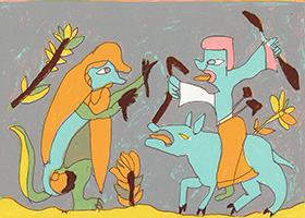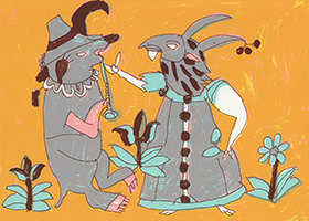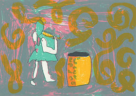 ![]() ![]() Flötenspielerin und Harfenspieler |